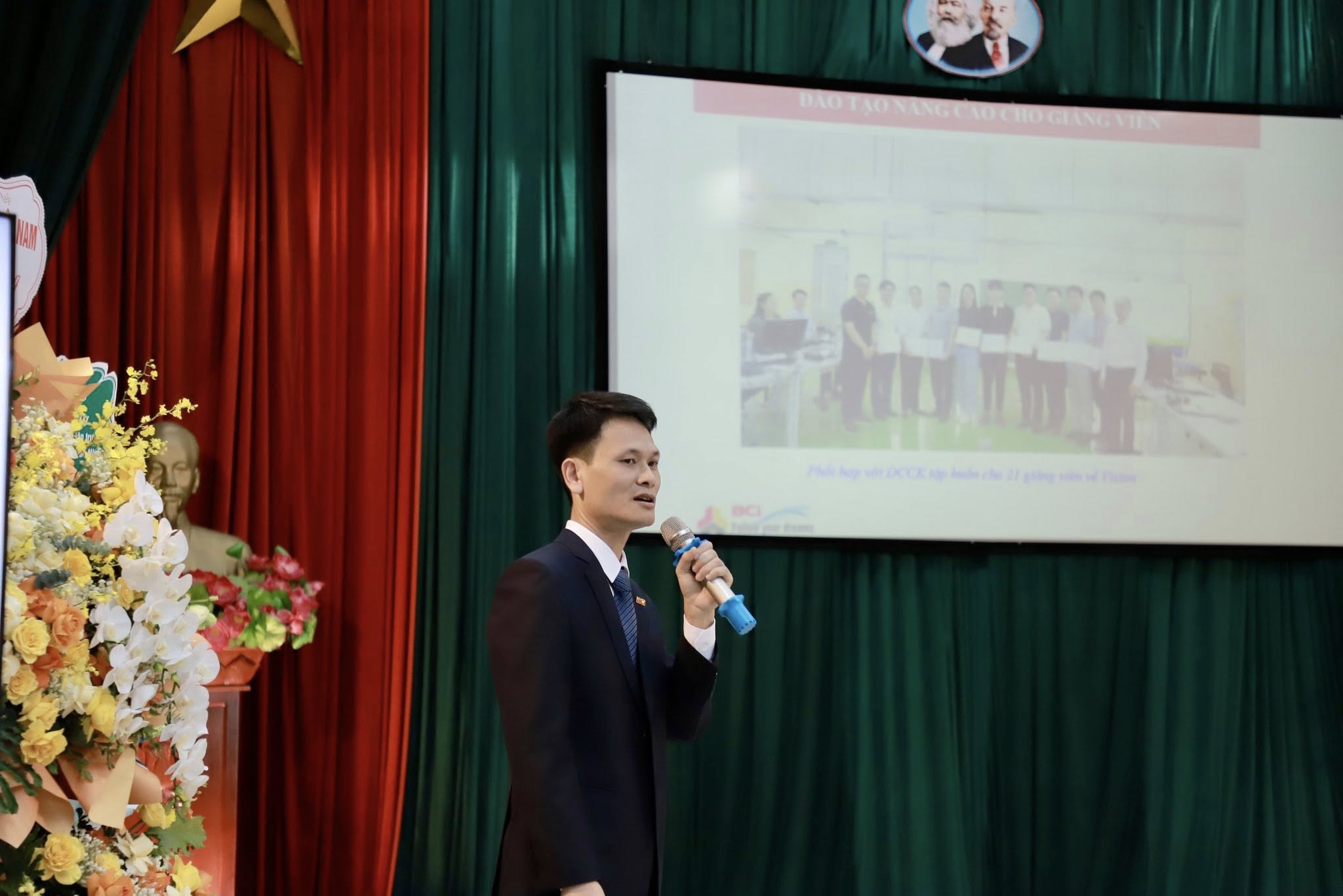 ThS. Trần Trung Hậu – Trưởng khoa Điện - Điện tử BCI, nhấn mạnh về kết quả hợp tác hiệu quả với doanh nghiệp, đặc biệt là chương trình sinh viên học tại doanh nghiệp (chương trình "1+1+1"). Chương trình đã phối hợp tiêu biểu cùng Công ty Goertek, thu hút tổng số 365 sinh viên các ngành Điện tử công nghiệp, Cắt gọt kim loại chất lượng cao.