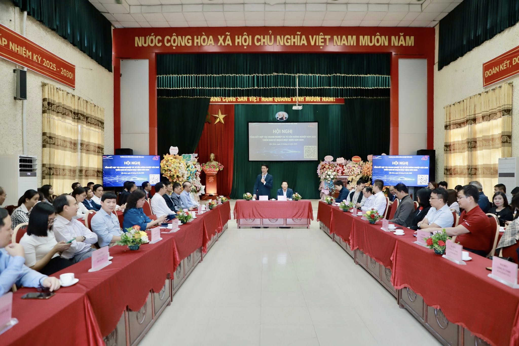Quang cảnh Hội nghị tổng kết hợp tác doanh nghiệp và tư vấn hướng nghiệp năm 2025 tại BCI. Sự kiện thu hút sự tham gia của đại diện các trường THPT, doanh nghiệp và cơ quan quản lý nhà nước, thể hiện sự quan tâm lớn đến việc phát triển nguồn nhân lực