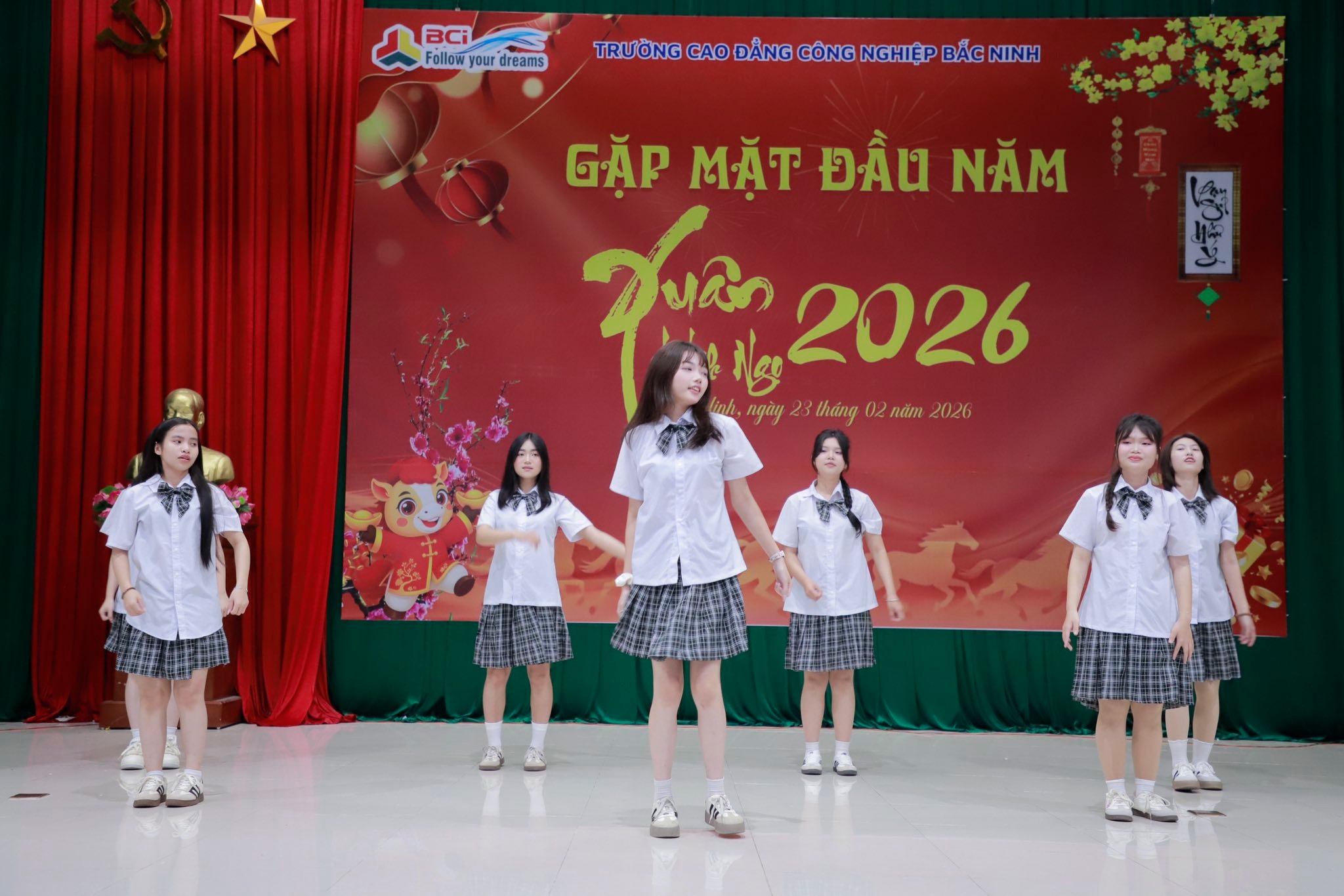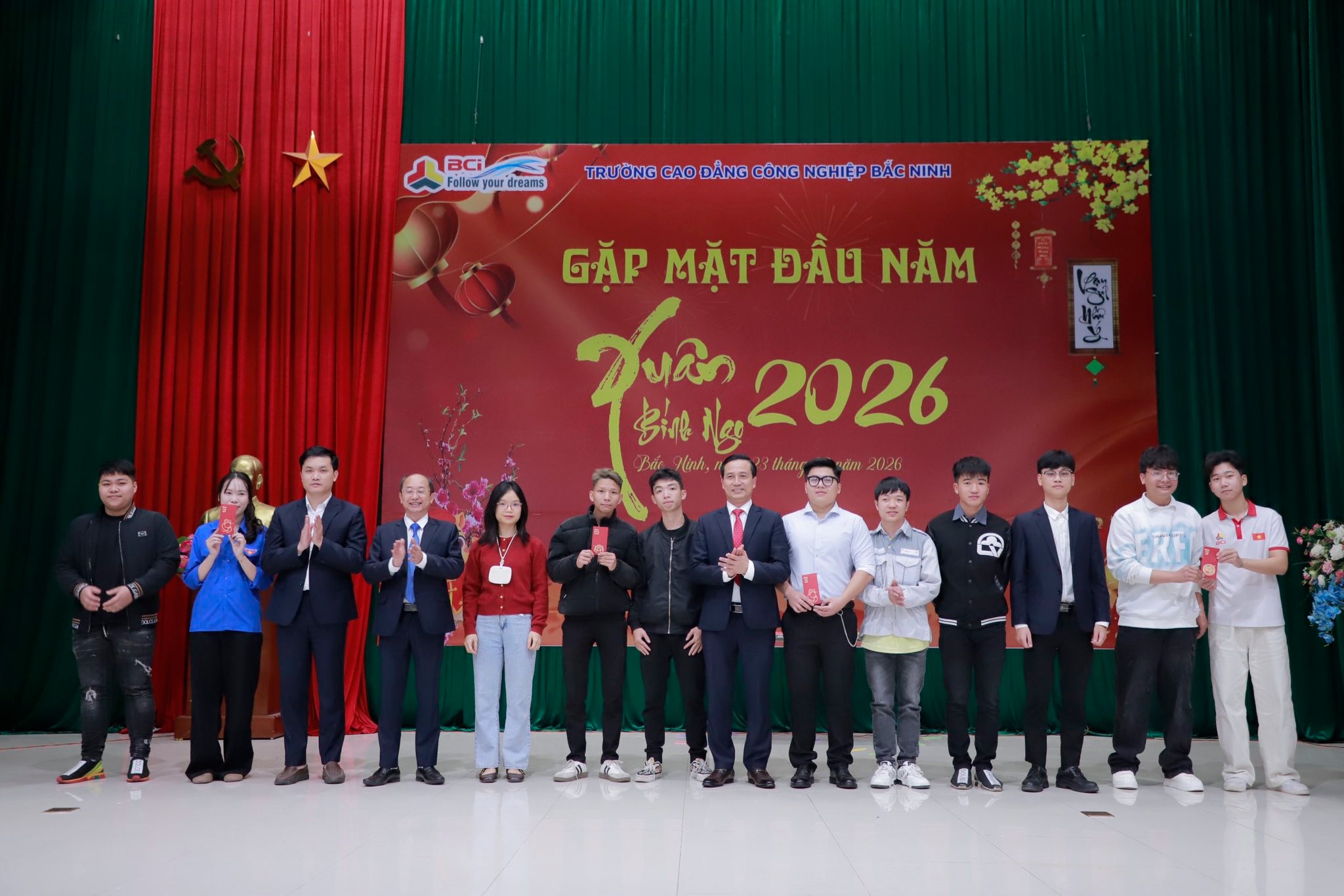 (BCI-PR)- Sáng ngày 23/02/2026 (tức mùng 7 Tết Bính Ngọ), Trường Cao đẳng Công nghiệp Bắc Ninh (BCI) đã trang trọng tổ chức Chương trình Chào xuân 2026. Hoạt động nhằm tạo không khí vui tươi, phấn khởi cho tập thể cán bộ, giảng viên, người lao động và học sinh sinh viên (HSSV) trong những ngày đầu năm mới