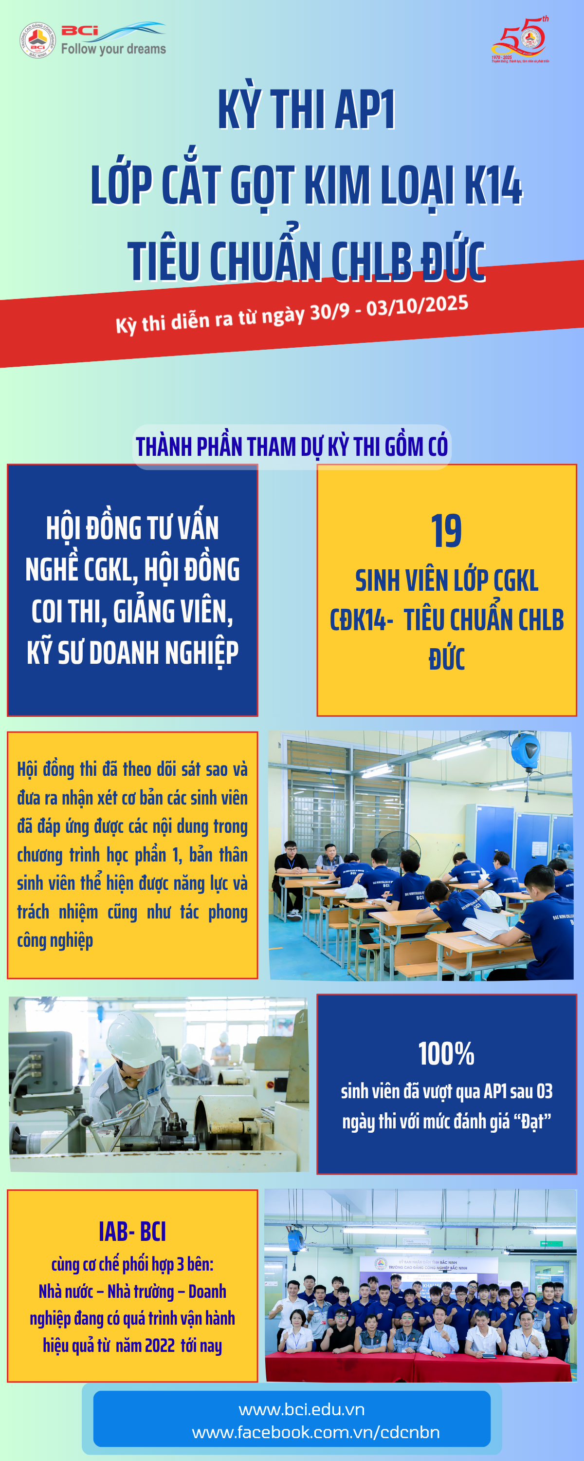 [BCI SKILL-UP] KỲ THI TỐT NGHIỆP AP1 LỚP CẮT GỌT KIM LOẠI CHẤT LƯỢNG CAO