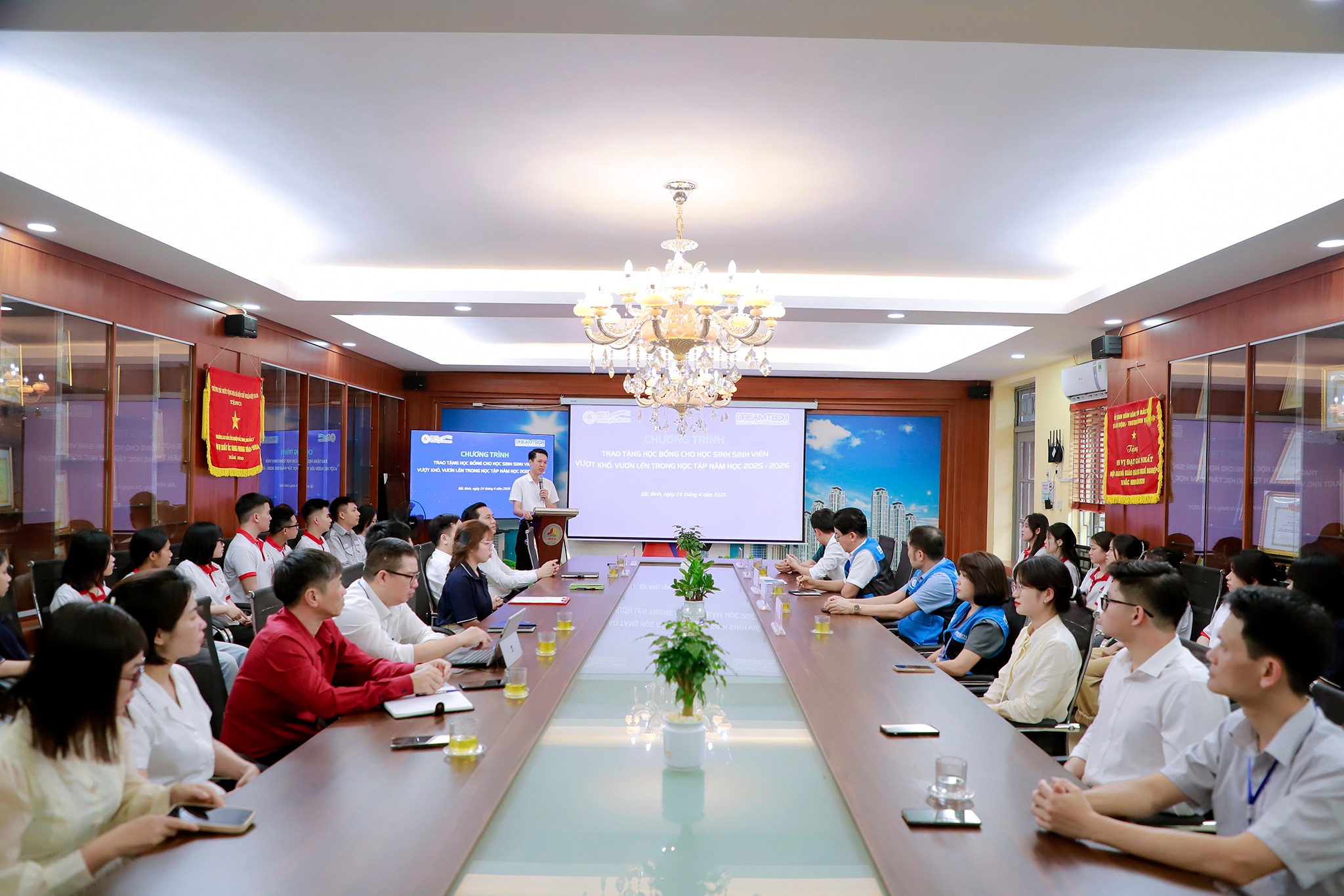 (PR-BCI)- Ngày 24/4/2026, Trường Cao đẳng Công nghiệp Bắc Ninh (BCI) phối hợp cùng Công ty TNHH Dreamtech Việt Nam tổ chức chương trình trao học bổng cho học sinh, sinh viên (HSSV) có hoàn cảnh khó khăn, luôn nỗ lực, bền bỉ vươn lên để đạt thành tích tốt trong học tập năm học 2025 - 2026.
