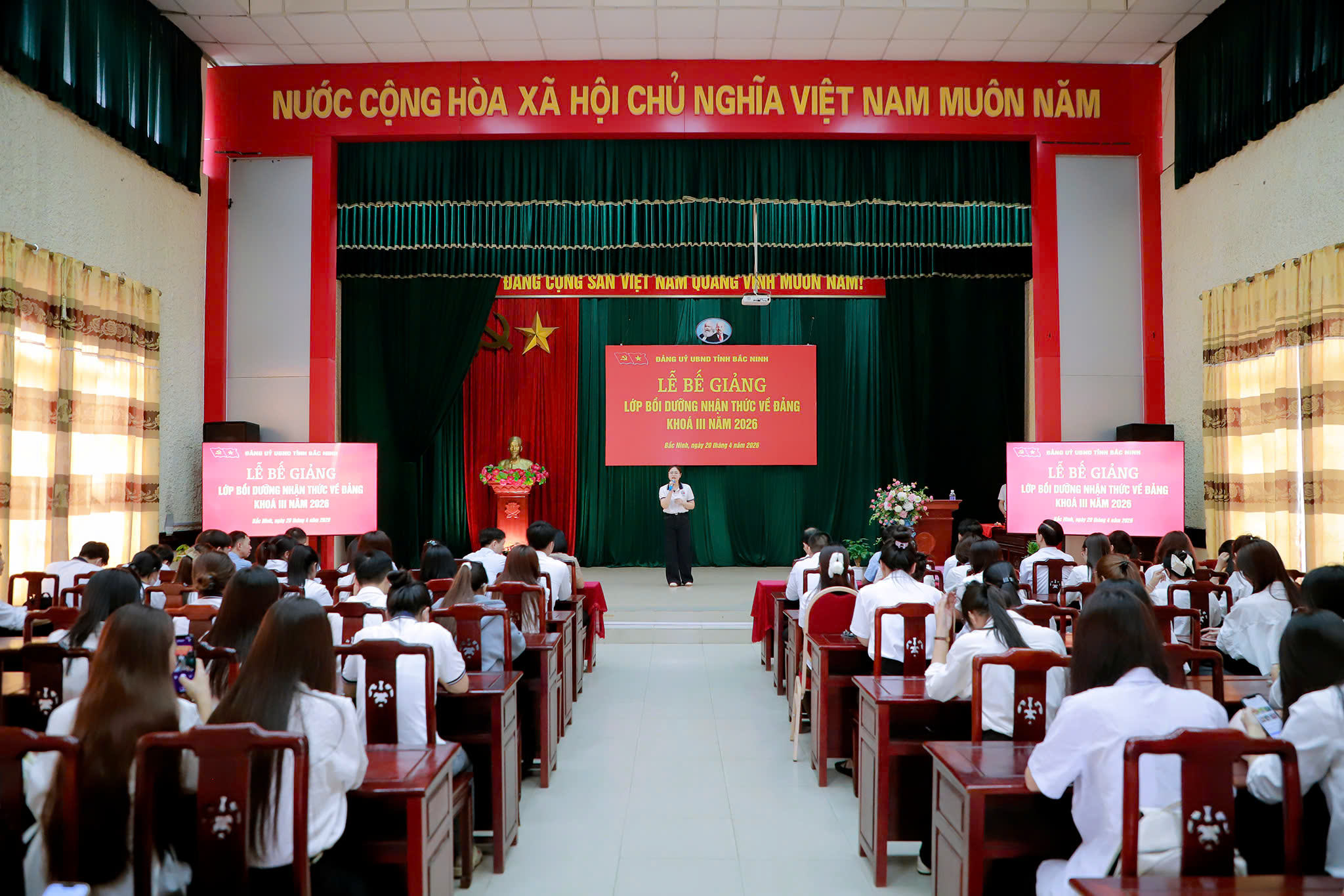 (PR-BCI)- Sáng ngày 20/4/2026, Ban Tổ chức lớp học trực thuộc Đảng ủy UBND tỉnh Bắc Ninh đã tổ chức chuỗi hoạt động tổng kết Lớp bồi dưỡng nhận thức về Đảng Khóa III năm 2026. Chương trình bao gồm Lễ dâng hương tưởng niệm Tổng Bí thư Nguyễn Văn Cừ và Lễ bế giảng, trao giấy chứng nhận cho hơn 100 quần chúng ưu tú.