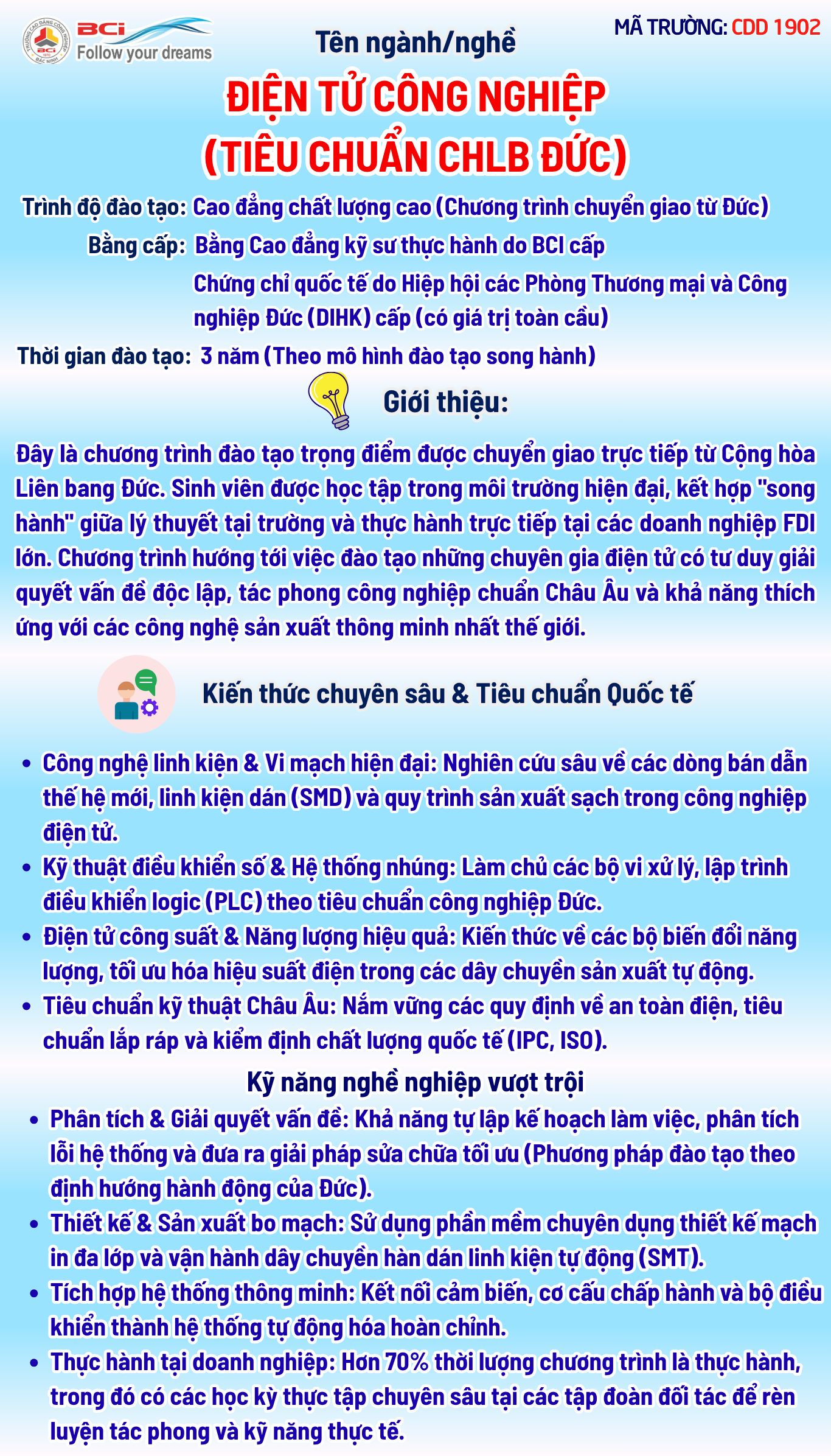 NGÀNH ĐIỆN TỬ CÔNG NGHIỆP TIÊU CHUẨN CHLB ĐỨC (Đào tạo theo tiêu chuẩn Quốc tế)