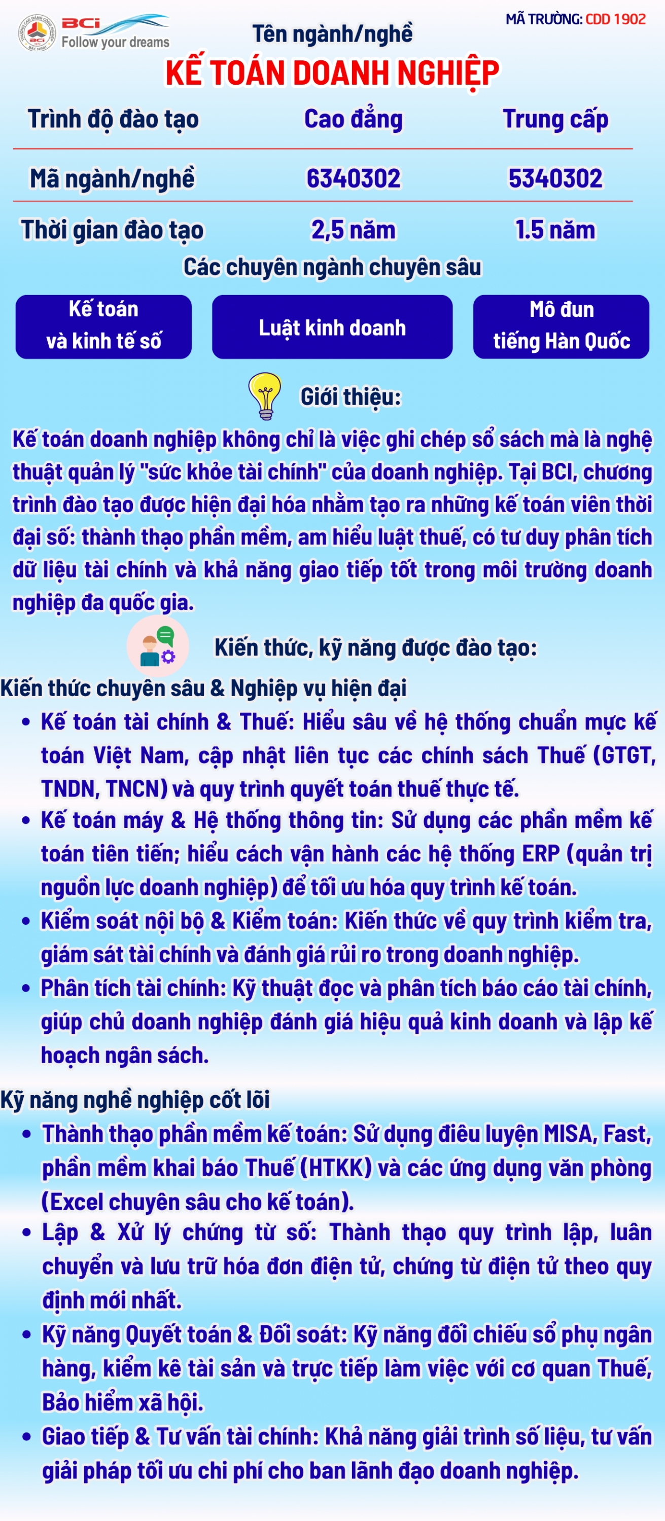 NGÀNH KẾ TOÁN DOANH NGHIỆP (Kế toán và kinh tế số, luật kinh doanh)