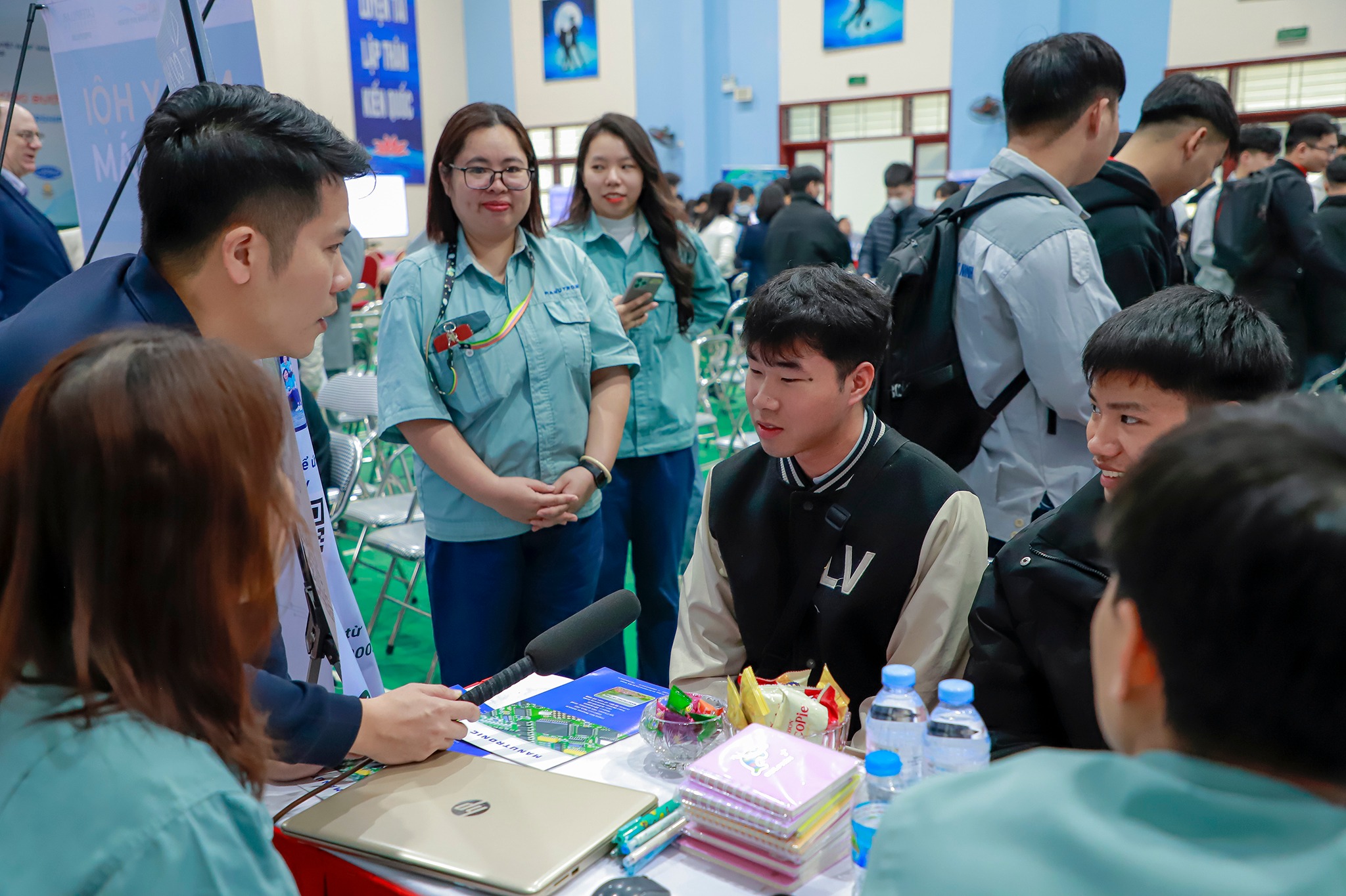 Không khí tại các gian hàng tuyển dụng phản ánh rõ nét sức hút của sinh viên BCI. Đại diện các doanh nghiệp không chỉ đến để nhận hồ sơ mà còn trực tiếp phỏng vấn, “giữ chỗ” cho những ứng viên tiềm năng.