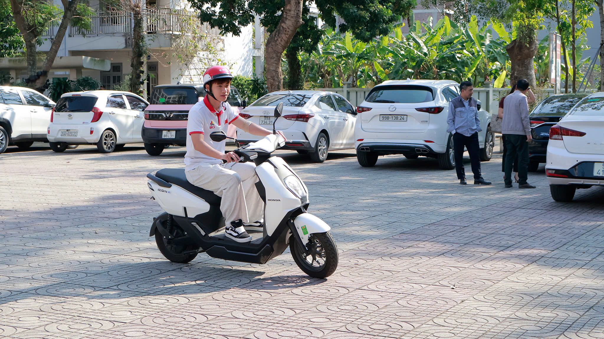 Điểm nhấn của chương trình là hoạt động chạy thử xe. Để đảm bảo an toàn, các bạn sinh viên đều được trang bị mũ bảo hiểm và hướng dẫn kỹ năng lái xe cơ bản trước khi điều khiển. Đa số sinh viên đều bày tỏ sự thích thú với khả năng vận hành êm ái, tăng tốc mượt mà và thiết kế nhỏ gọn, phù hợp với môi trường đô thị của Icon E.