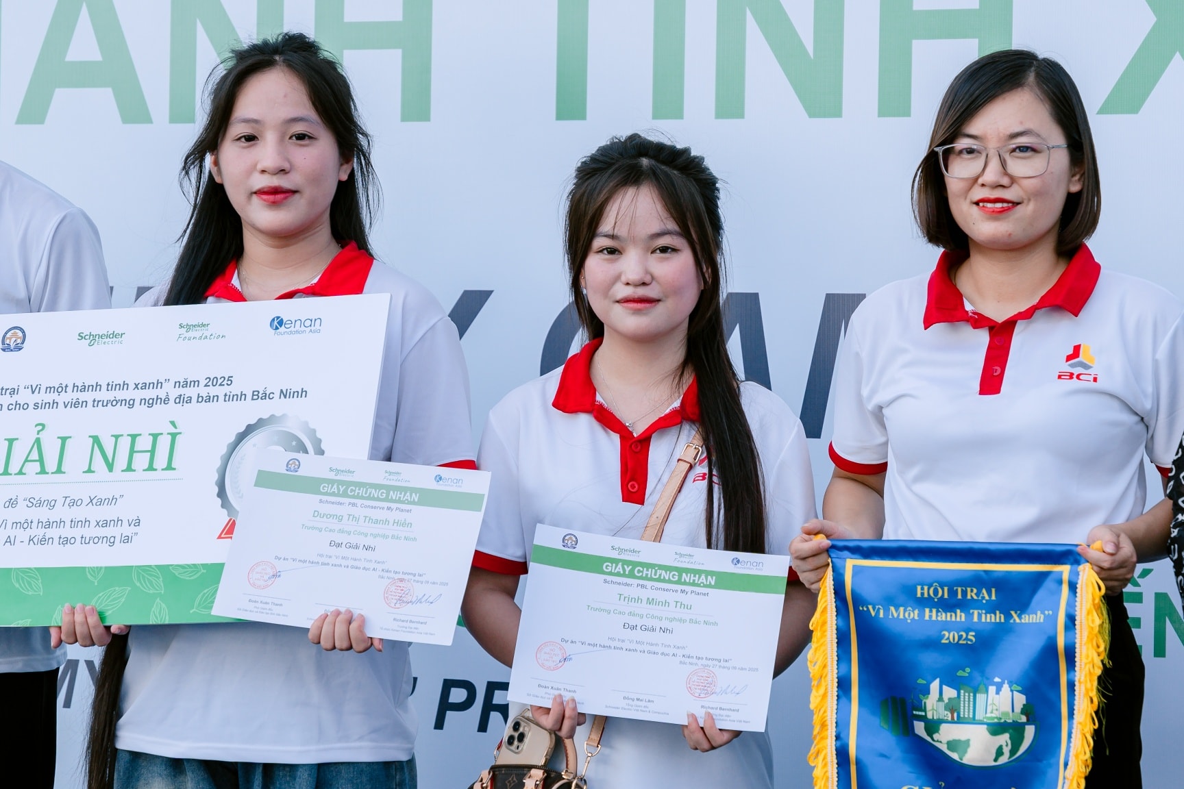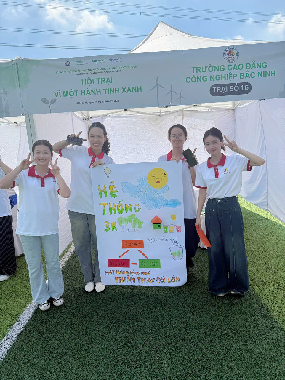 (Bắc Ninh) – Đội tuyển sinh viên trường Cao đẳng Công nghiệp Bắc Ninh (BCI) vừa xuất sắc giành Giải Nhì tại Hội trại "Vì Một Hành Tinh Xanh" diễn ra vào ngày 03/10/2025. Cuộc thi do Kenan Foundation Asia và Schneider Electric Foundation tổ chức, với sự tham gia của 11 trường cao đẳng trong tỉnh.