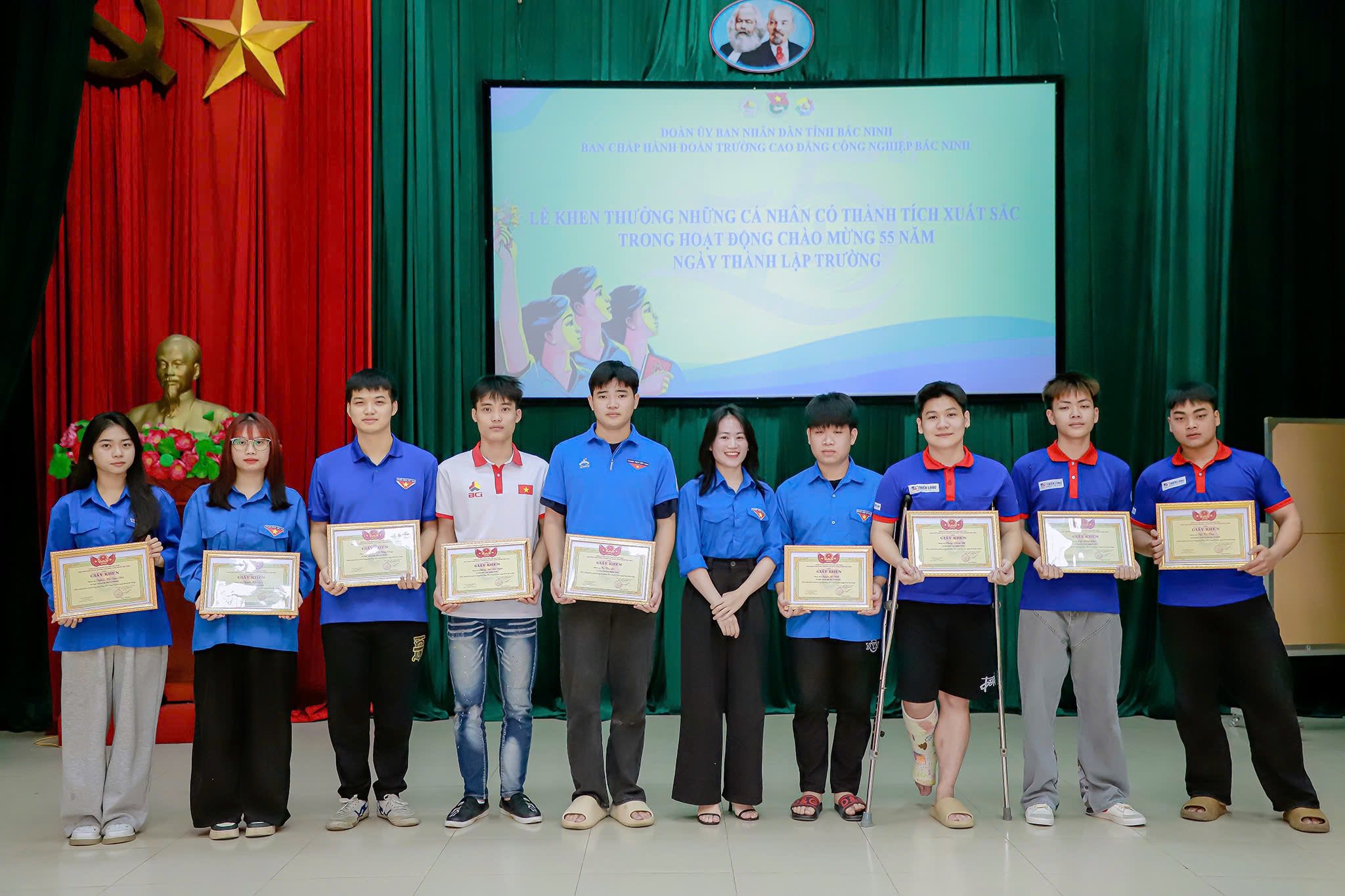 Sáng ngày 17/12/2025, Ban Chấp hành Đoàn Trường Cao đẳng Công nghiệp Bắc Ninh đã long trọng tổ chức Lễ khen thưởng các cá nhân có thành tích xuất sắc và tinh thần hỗ trợ tích cực trong đợt thi đua cao điểm chào mừng kỷ niệm 55 năm Ngày thành lập Trường.